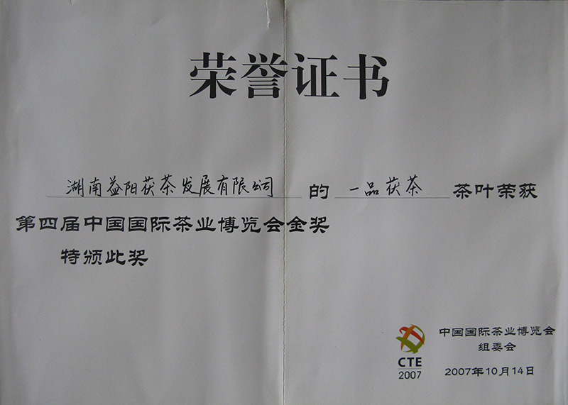 中國茶葉博覽會(huì)金獎(jiǎng)
