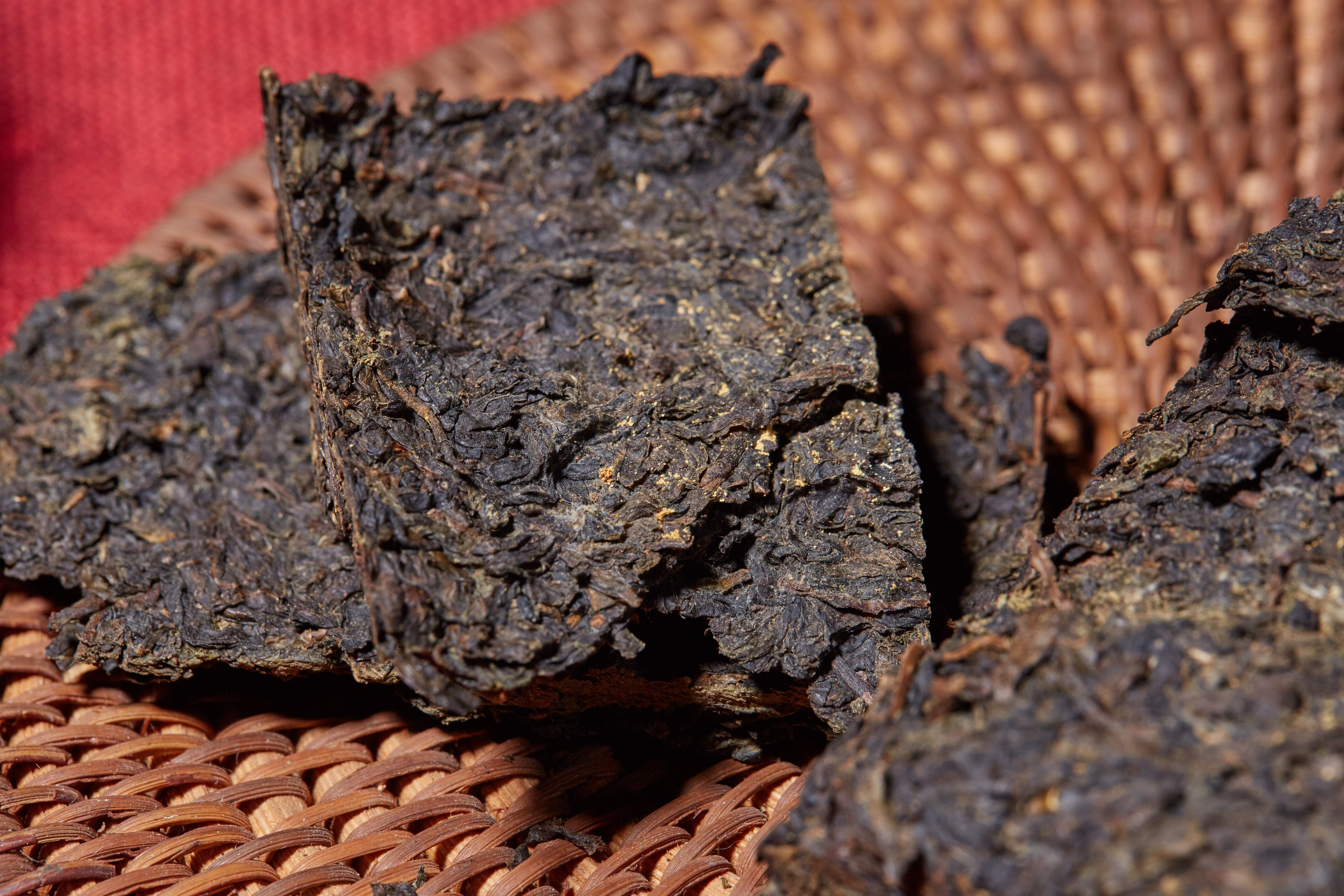 鮮葉再經(jīng)殺青、揉捏、渥堆等工藝環(huán)節(jié)初制成黑毛茶。條索緊結(jié)、較圓直、嫩度較好,色澤黑潤,從原料上保證了優(yōu)厚的物質(zhì)基礎(chǔ)。