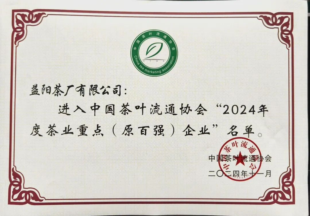益陽茶廠有限公司榮獲“2024年度茶業(yè)重點企業(yè)”