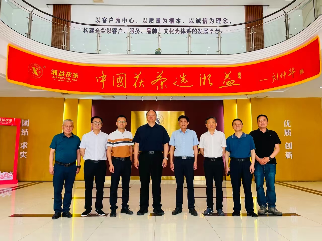 在董事長彭雄根、總經(jīng)理余智勇、國家級非遺傳承人劉杏益及副總經(jīng)理姚永軍的陪同下,調(diào)研組深入茯磚茶生產(chǎn)車間,觀摩了原料篩選、壓制、發(fā)花等核心工藝環(huán)節(jié)。文富恒主任委員在被譽(yù)為“茯茶靈魂”的“金花酵庫”,詳細(xì)詢問了冠突散囊菌群的培育技術(shù)與品質(zhì)控制標(biāo)準(zhǔn),對益陽茶廠在堅(jiān)持傳統(tǒng)工藝基礎(chǔ)上推進(jìn)標(biāo)準(zhǔn)化、規(guī)?;a(chǎn)的實(shí)踐給予高度評價(jià)。隨后,調(diào)研組一行走進(jìn)湘益茶博館,通過歷史文獻(xiàn)、制茶器具及茯茶實(shí)物,系統(tǒng)了解茯磚茶發(fā)展脈絡(luò)和公司的發(fā)展歷程。