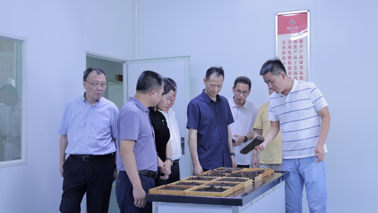 在益陽茶廠黨委書記、常務(wù)副總經(jīng)理徐迪軍,副總經(jīng)理姚永軍等的引導(dǎo)下,調(diào)研組實地考察了茯磚茶核心生產(chǎn)區(qū)域,依次參觀了篩分車間、壓制車間、金花酵庫(烘房)以及湖南農(nóng)業(yè)大學(xué)博士科研工作站。林鐘樂會長對益陽茶廠將國家級非遺技藝精髓與現(xiàn)代生產(chǎn)標(biāo)準(zhǔn)及設(shè)備相融合的創(chuàng)新實踐給予了充分肯定。